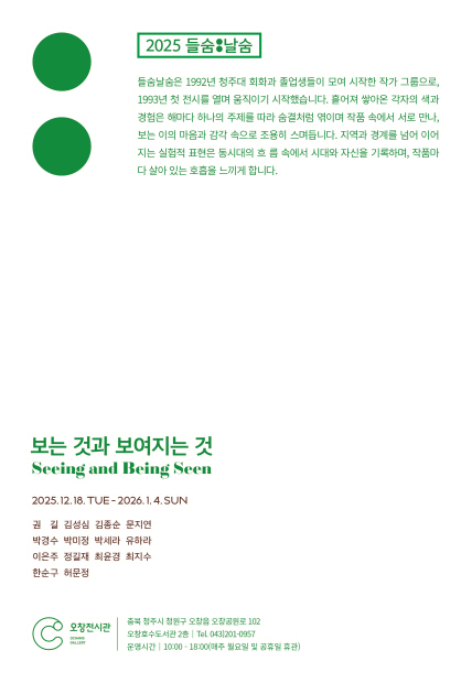 들숨날숨은 1992년 청주대 회화과 졸업생들이 모여 시작한 작가 그룹으로, 1993년 첫 전시를 열며 움직이기 시작했습니다.