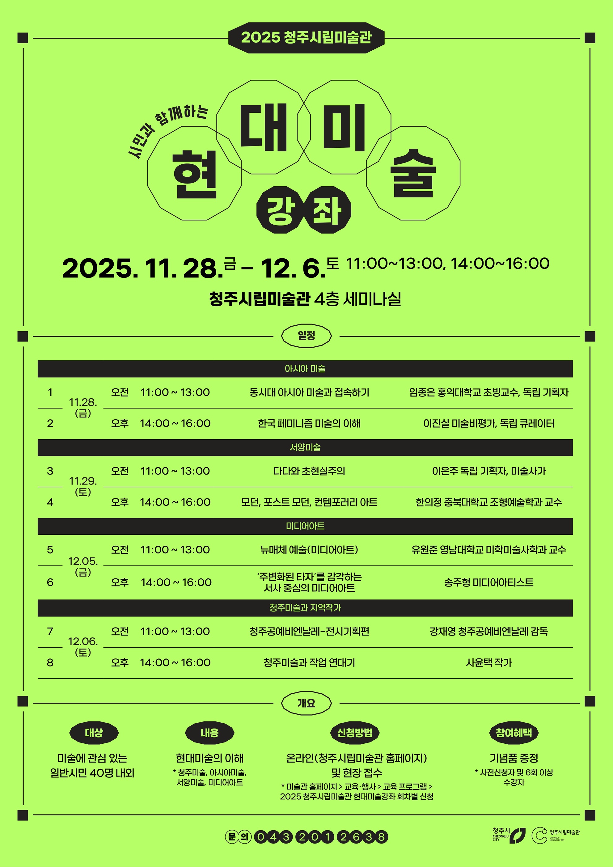 * 미술관 홈페이지 > 교육 행사 > 교육 프로그램 > 2025 청주시립미술관 현대미술 강좌